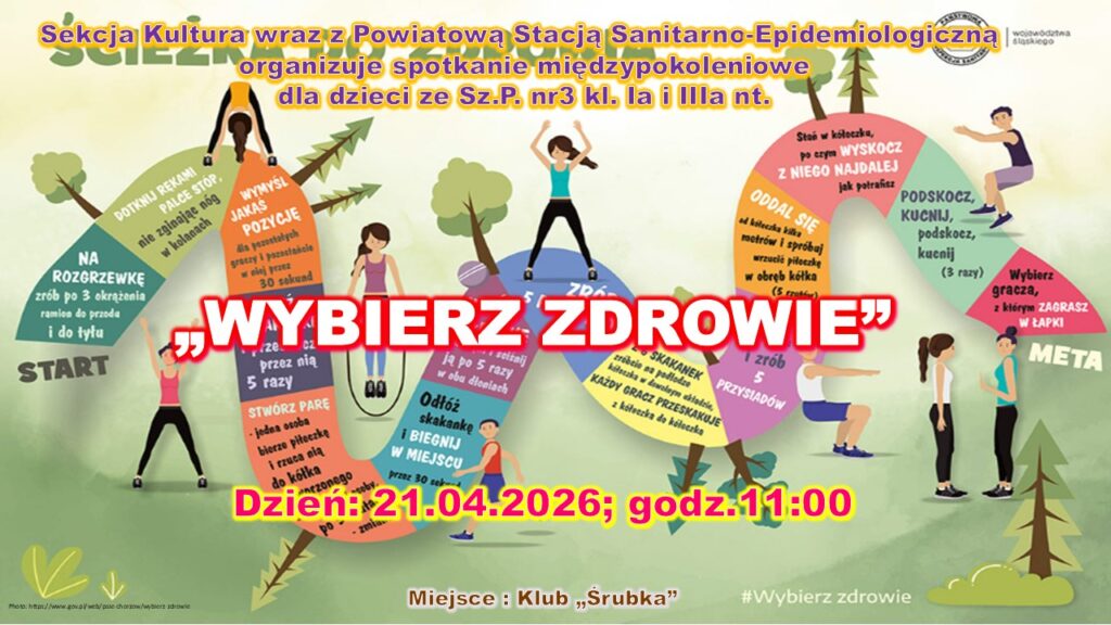 * MEDYCYNA I PROFILAKTYKA – w wybrane piątki o godz. 17:00 w Klubie „Śrubka”. Tematyka i terminy spotkań są podawane na bieżąco. Odpowiedzialne: Teresa Motyka